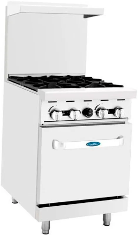 Equipo industrial diseñado para optimizar su cocina, con servicio múltiple en un solo mueble. Fabricado en Acero inoxidable, cuenta con Estufa industrial de 4 quemadores en hierro fundido de 30 x 30 y horno cocción tipo convencional con rejilla incluida; todo el equipo funciona a gas.